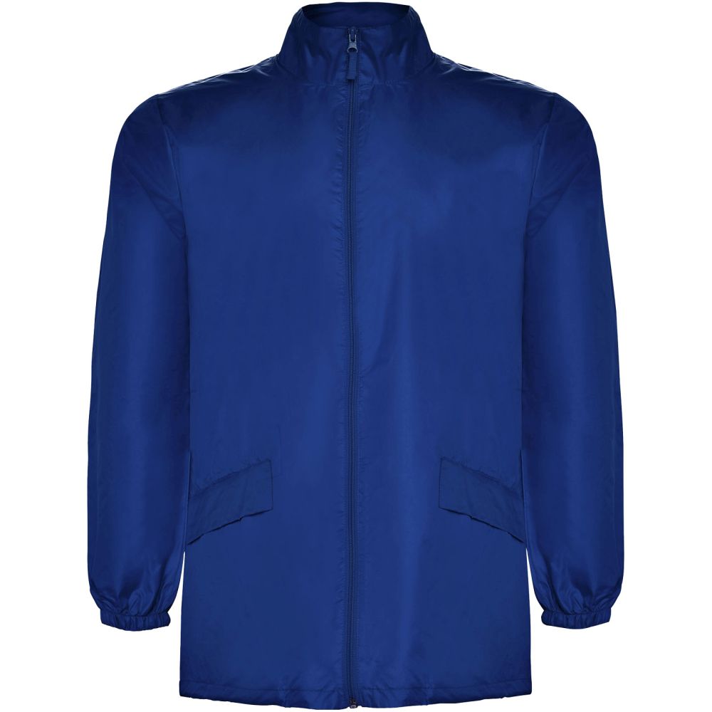 Nepromokavá pláštěnka. Vysoký výstřih a skládací kapuce s nastavitelnou šňůrkou. Přední zip s odpovídajícím taháčkem. Dvě boční kapsy s klopou. Elastické manžety. Elastický pásek uvnitř kapsy pro složení a uskladnění. Voděodolný model. Model měří 185 cm a má na sobě velikost L.