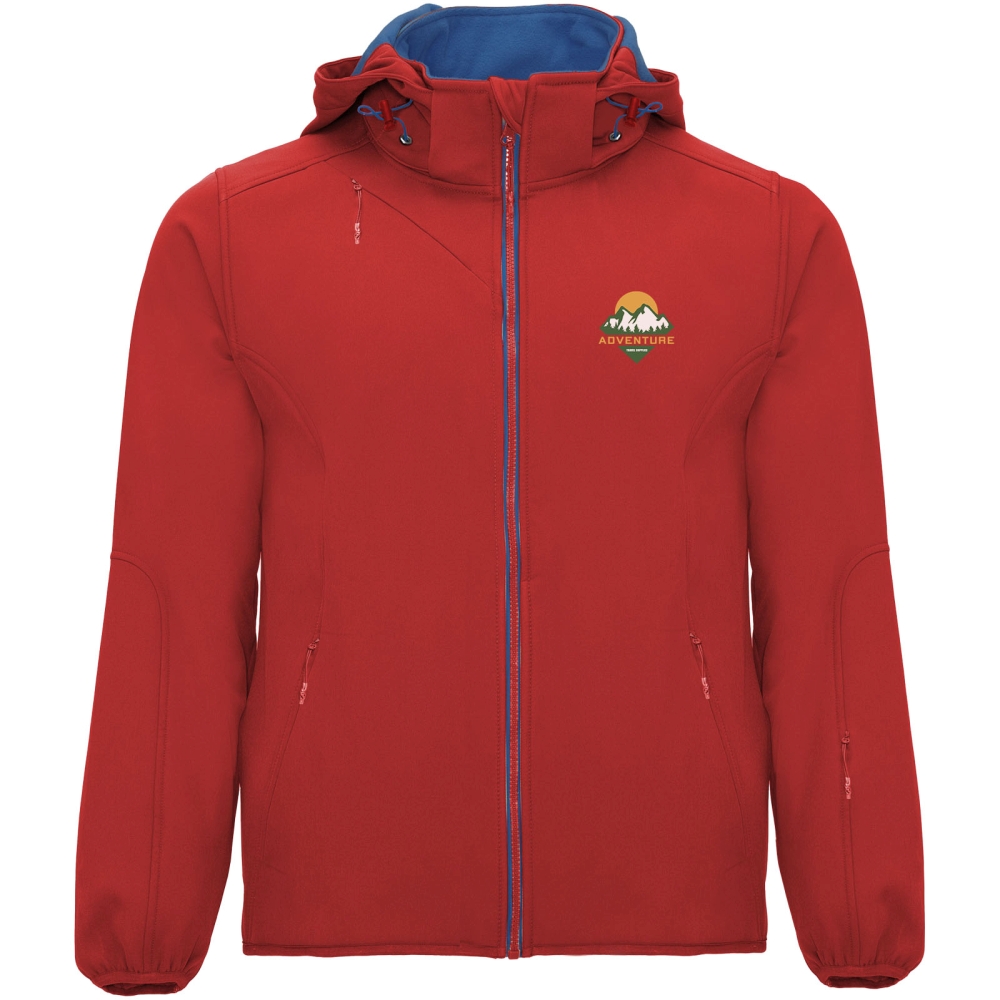 Dvouvrstvý softshell ve sportovním střihu: Kontrastní středový zip s ochranou brady a taháčkem. Vnitřní podšívka z kontrastní mikrofleecové tkaniny. Vnější kapsa na pravé straně hrudníku s neviditelným zipem v diagonálním tvaru. Dvě boční kapsy s neviditelným zipem. Kapsa na levém rukávu. Odpovídající elastické lemování manžet a spodního lemu. Sklopná kapuce s kontrastní mikropolární podšívkou. Odnímatelný štítek. Nepromokavá. Odolná proti větru.