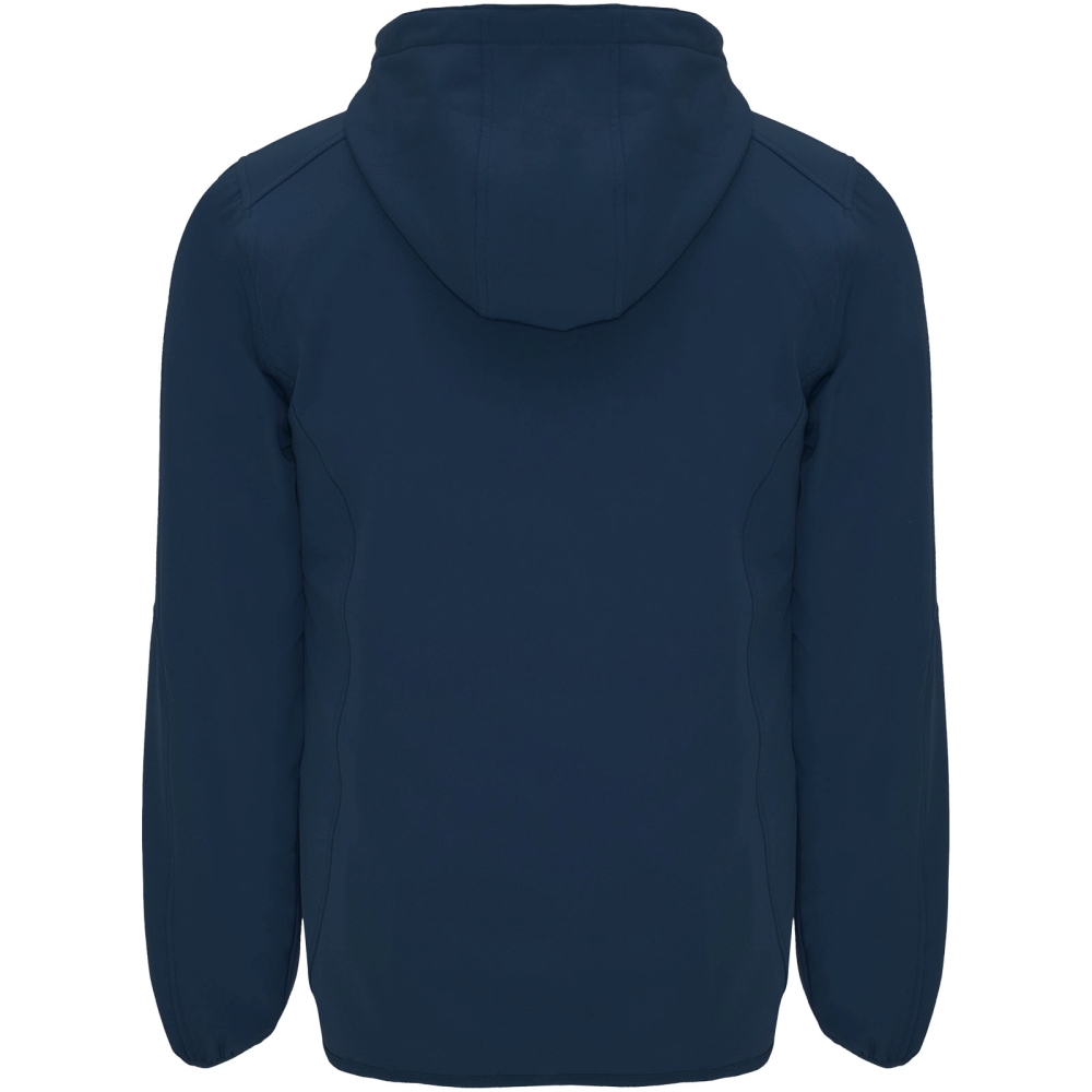 Dvouvrstvý softshell ve sportovním střihu: Kontrastní středový zip s ochranou brady a taháčkem. Vnitřní podšívka z kontrastní mikrofleecové tkaniny. Vnější kapsa na pravé straně hrudníku s neviditelným zipem v diagonálním tvaru. Dvě boční kapsy s neviditelným zipem. Kapsa na levém rukávu. Odpovídající elastické lemování manžet a spodního lemu. Sklopná kapuce s kontrastní mikropolární podšívkou. Odnímatelný štítek. Nepromokavá. Odolná proti větru.