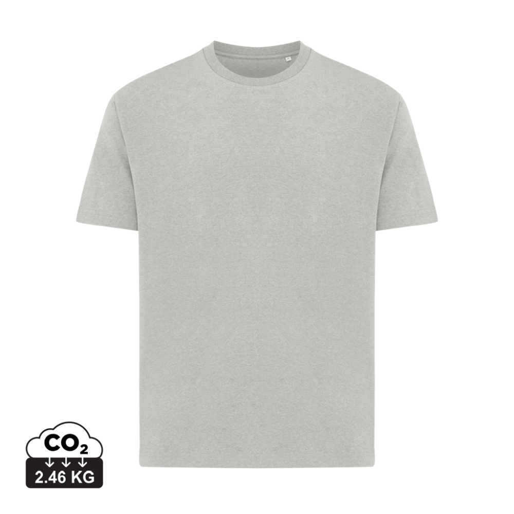 Unisex boxy fit tričko vyrobené ze 100 % bavlny (50 % recyklované, 50 % organické) s gramáží 180g/m2. Výstřih s 1x1 žebrováným lemem, pohodlný širší střih a mírně kratší délka. Obsah recyklovaných a organických materiálů je garantován díky využití technol