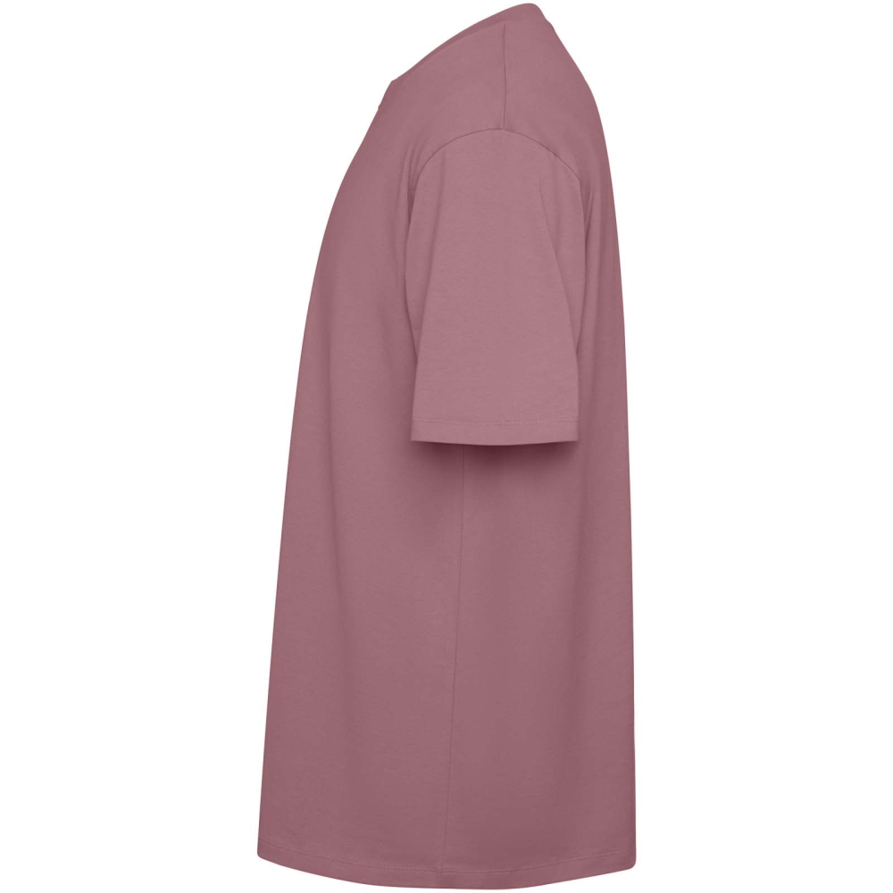 Tričko s krátkým rukávem v nadměrné velikosti. Kulatý límec zdobený 2×1 žebrovým úpletem se sladěnými kryty švů. Boční švy. Široké dvojité prošívání na rukávech a lemu. Odnímatelný štítek.