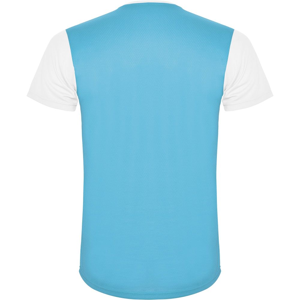 Snadno schnoucí, technická a prodyšná látka. Kulatý výstřih. Kombinace dvou polyesterových látek na zádech a ramenou. Látka „ptačí oko“ vpředu a prodyšná 3D síťovina na zádech. Látka připravená pro absorpci vlhkosti. Ozdobný klikatý zadní steh na bocích a na ramenou. Zadní vzor je mírně delší. Odnímatelný štítek. Materiál: 100% polyester