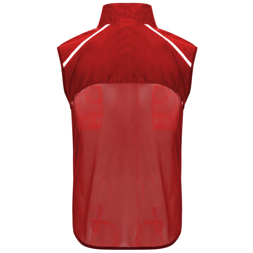 Větruodolná a prodyšná. Přední zip s odpovídajícím chráničem brady. Elastické lemování v průramcích a na spodním okraji. Spodní část zad z mikroperforované látky. Vysoce viditelné detaily na horní, přední a zadní straně. Kapsa s elastickým páskem pro uložení vesty a její nošení na zápěstí. Odnímatelný štítek.