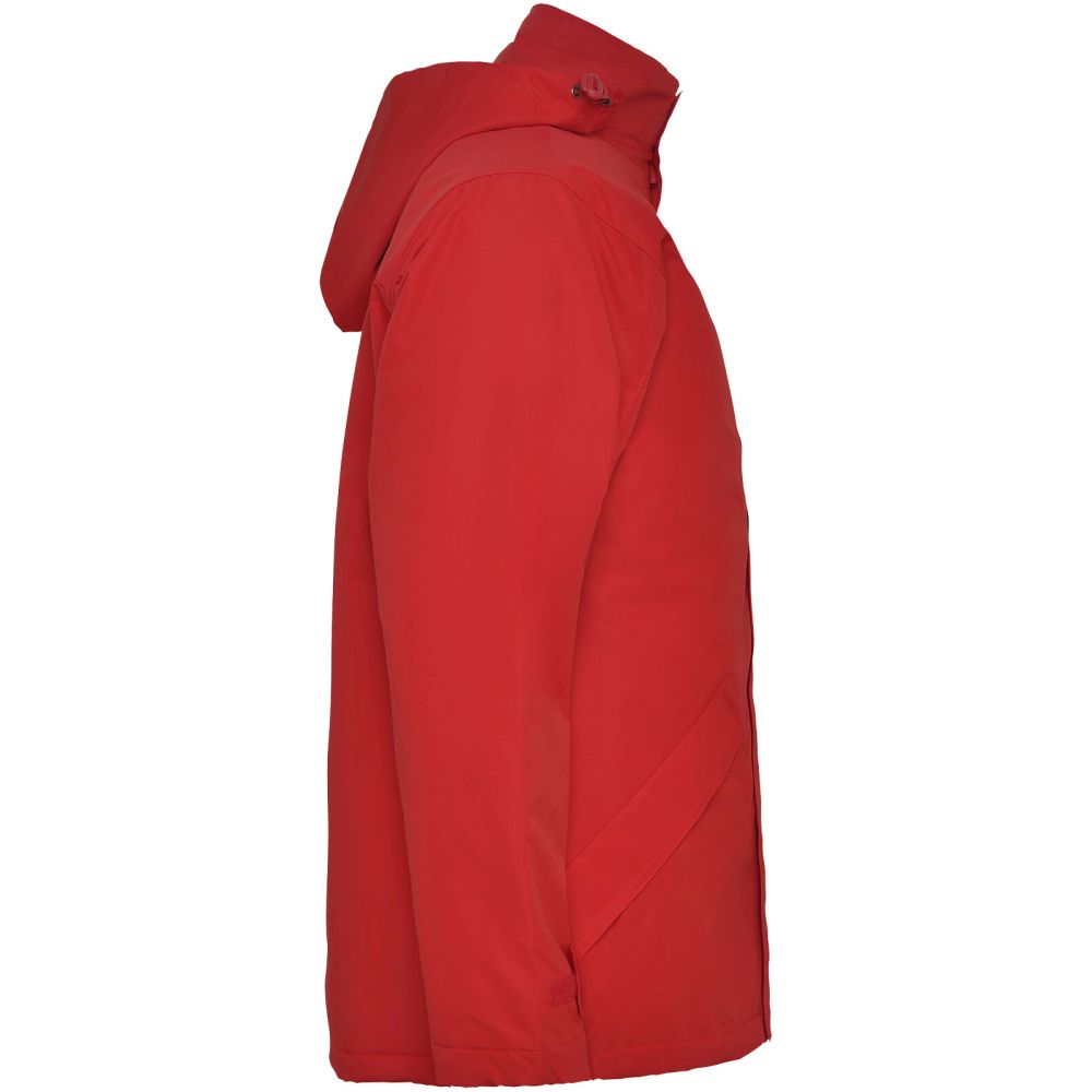 Nepromokavá bunda s polstrováním. Středový tvarovaný zip s odpovídající klopou. Vysoký výstřih se skládací kapucí. Boční kapsy na zip a klopu. Nastavitelné manžety s popruhy. Dvě vnitřní kapsy se zapínáním na suchý zip. Vnitřní zip umožňuje dostupnost pod podšívku pro potisk/výšivku. K dispozici jsou dětské velikosti. Nepromokavé. Odolné proti větru. Model měří 184 cm a má na sobě velikost L.
