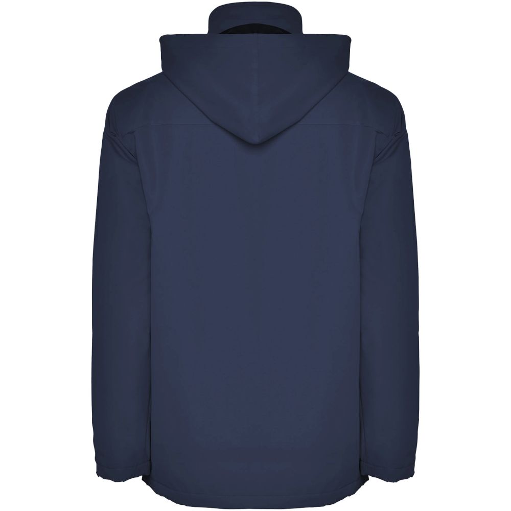 Nepromokavá bunda s polstrováním. Středový tvarovaný zip s odpovídající klopou. Vysoký výstřih se skládací kapucí. Boční kapsy na zip a klopu. Nastavitelné manžety s popruhy. Dvě vnitřní kapsy se zapínáním na suchý zip. Vnitřní zip umožňuje dostupnost pod podšívku pro potisk/výšivku. K dispozici jsou dětské velikosti. Nepromokavé. Odolné proti větru. Model měří 184 cm a má na sobě velikost L.