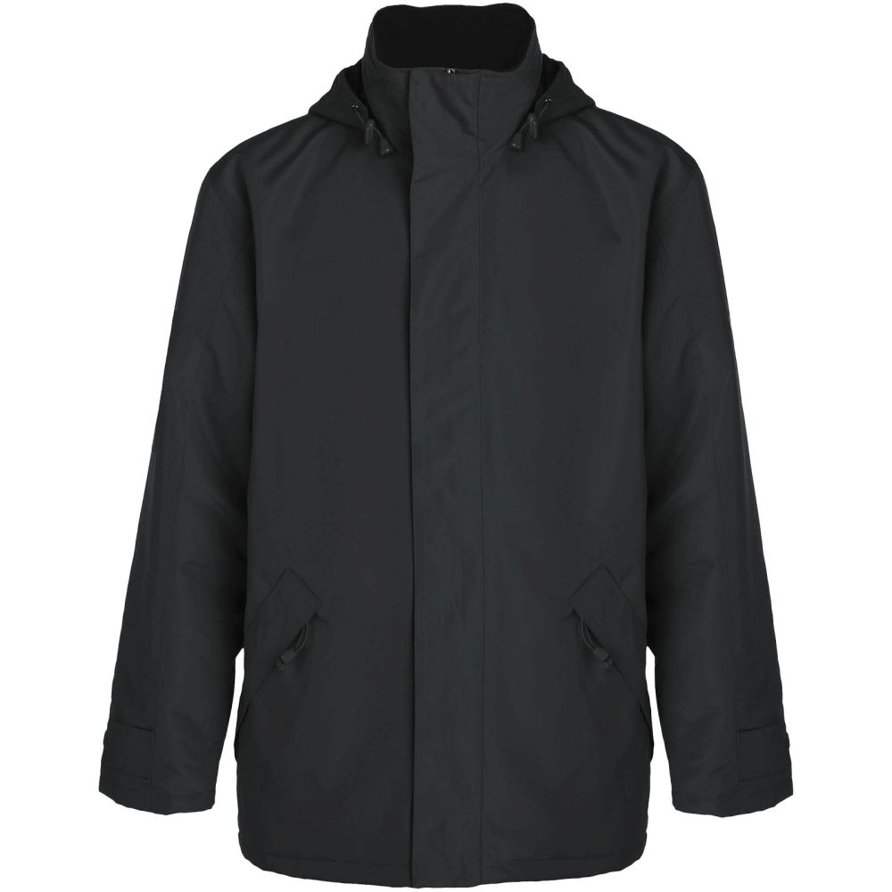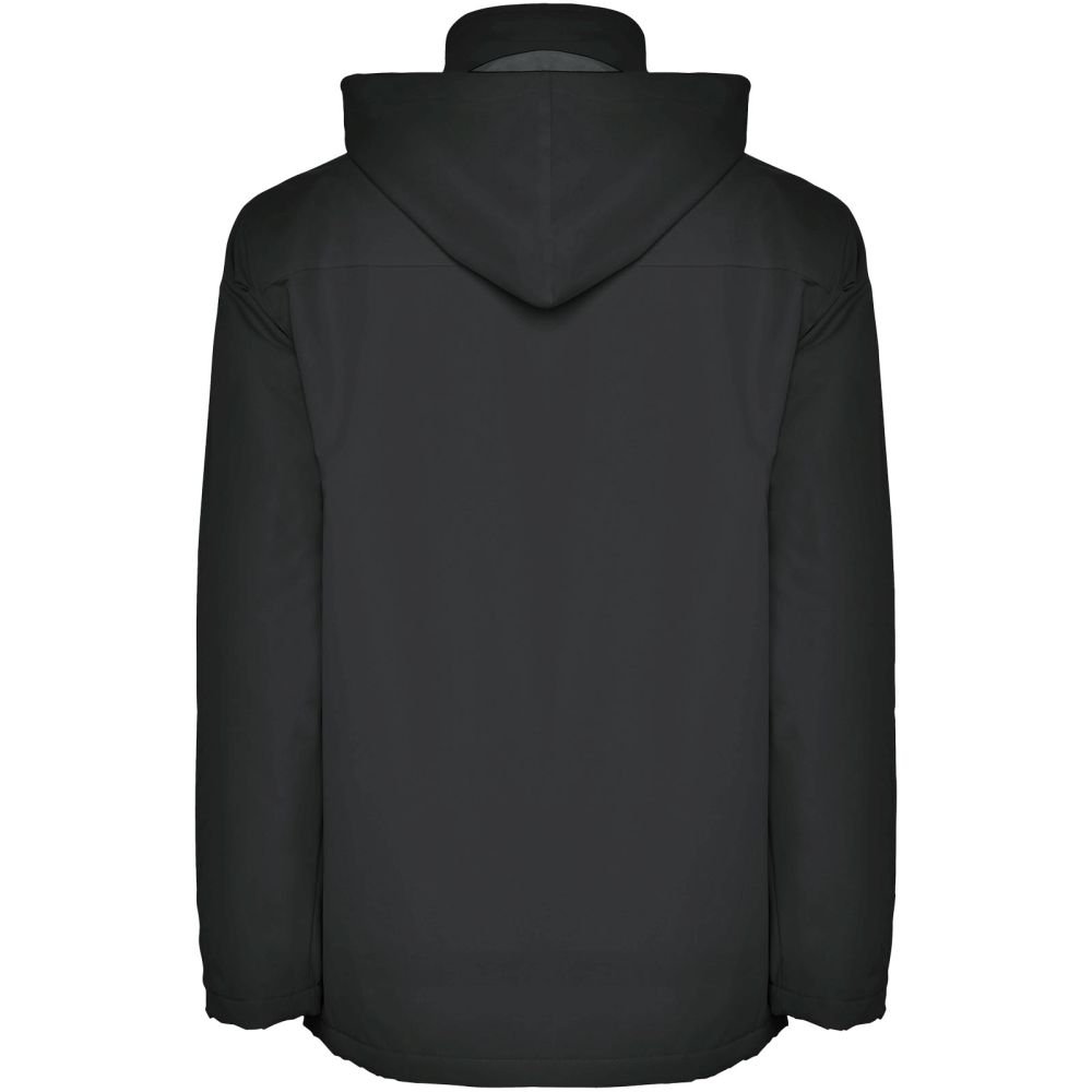 Nepromokavá bunda s polstrováním. Středový tvarovaný zip s odpovídající klopou. Vysoký výstřih se skládací kapucí. Boční kapsy na zip a klopu. Nastavitelné manžety s popruhy. Dvě vnitřní kapsy se zapínáním na suchý zip. Vnitřní zip umožňuje dostupnost pod podšívku pro potisk/výšivku. K dispozici jsou dětské velikosti. Nepromokavé. Odolné proti větru. Model měří 184 cm a má na sobě velikost L.