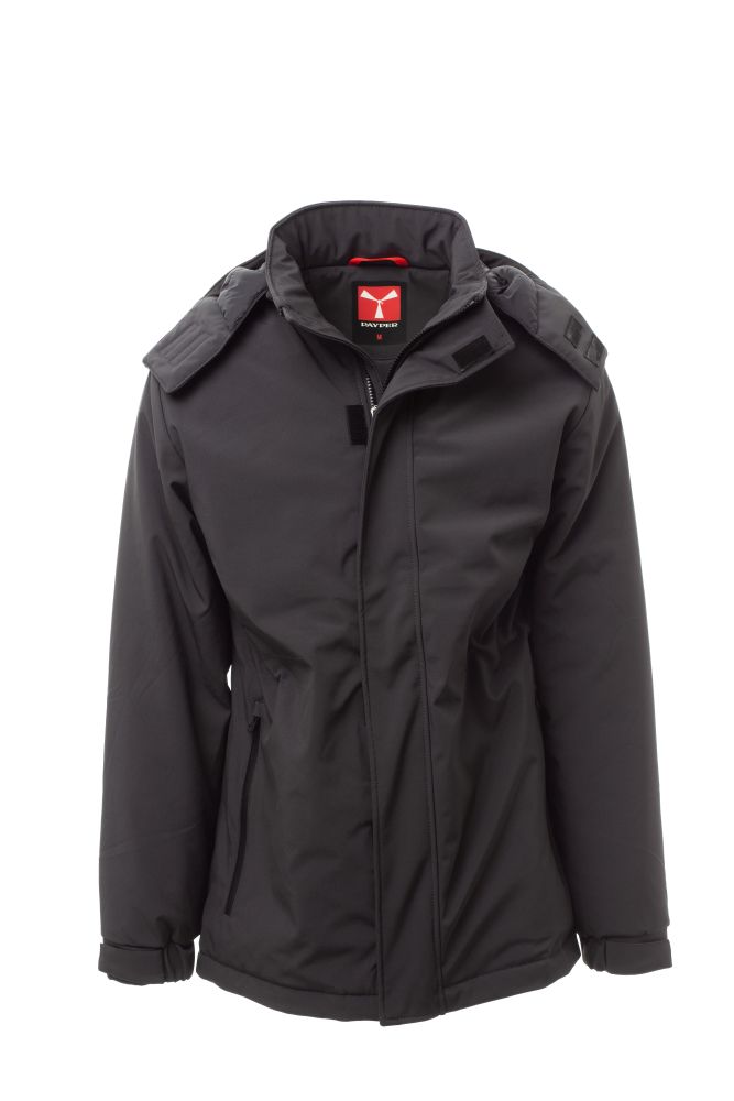 WP 8000 mm H2O, WVT 5000 g/m2 24h. Pánský zateplený softshell, zapínání na suchý zip a zip s kovovým jezdcem „semi-auto lock“ a přizpůsobeným taháčkem. Odnímatelná kapuce s předním zapínáním na suchý zip. Šňůrka v pase, dvě vnější kapsy s voděodolným zipem, jedna vnitřní prostřižená kapsa na tablet se zapínáním na suchý zip. Elastické stahovací manžety na suchý zip. Přizpůsobená nášivka na zadní straně límce, s reflexním prvkem.