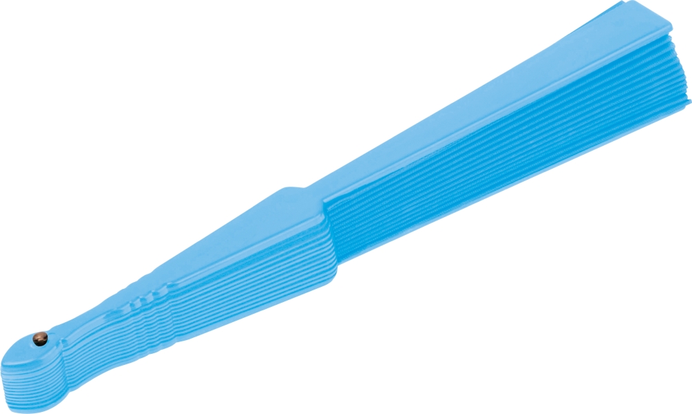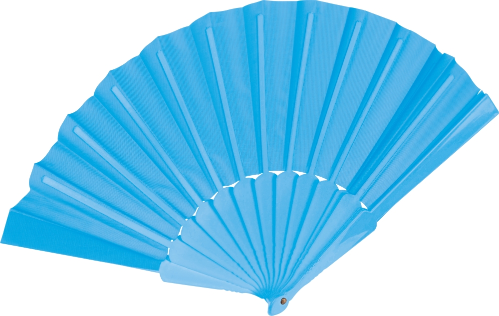Vějíř z plastu a polyesteru, světle modrá