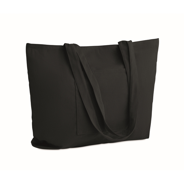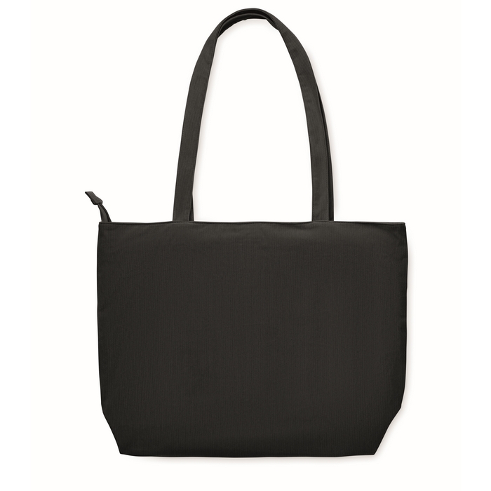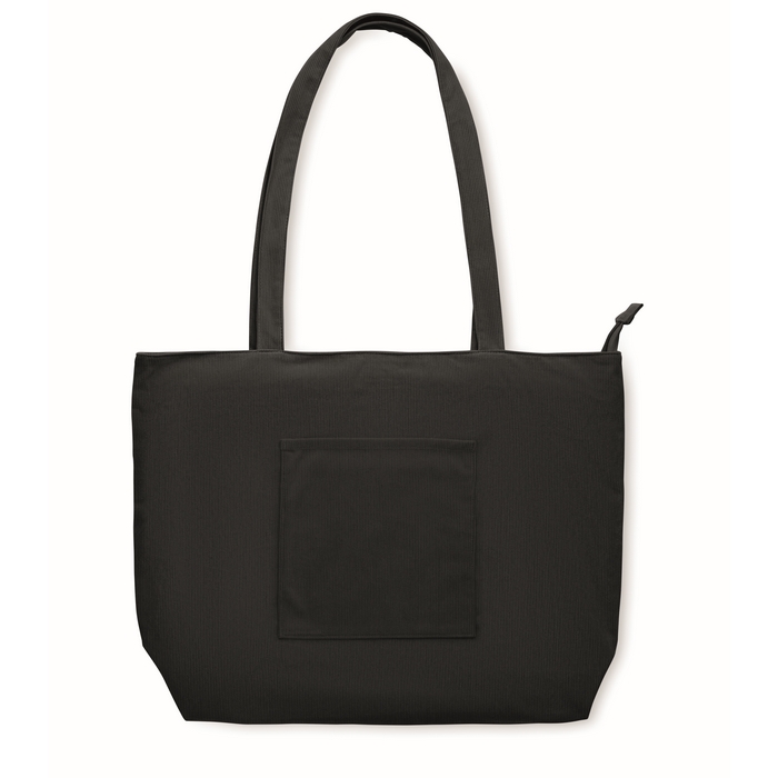 Velká nákupní/plážová taška z polyesterového manšestru se zapínáním na horní zip, otevřenou přední kapsou a vnitřní kapsou. 220 g/m2. Rozměry: 39 x 12 x 37 cm