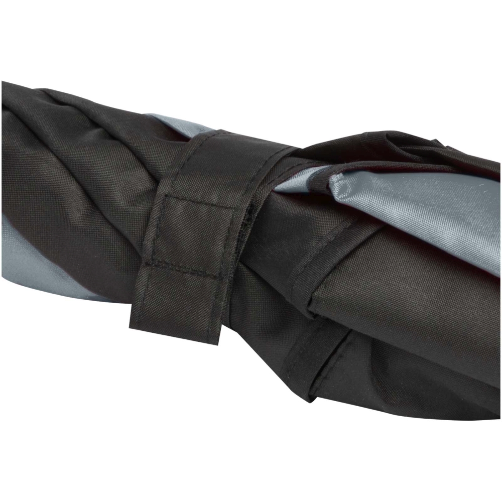 Větruodolný golfový deštník disponuje prostornou polyesterovou stříškou o šířce 140 cm, která pohodlně chrání více lidí před nepřízní počasí. Robustní laminátová tyč a rám poskytují vynikající flexibilitu a silnou odolnost vůči silnému větru. Praktická plastová rukojeť s tlačítkem pro automatické otevírání zajišťuje rychlé a snadné ovládání. Kontrastní panely stříšky představují perfektní příležitost pro výrazný a poutavý branding – ideální pro akce, reklamu nebo každodenní použití. Rozměry: 106 x 6 cm