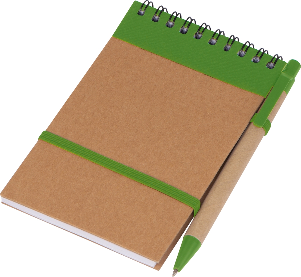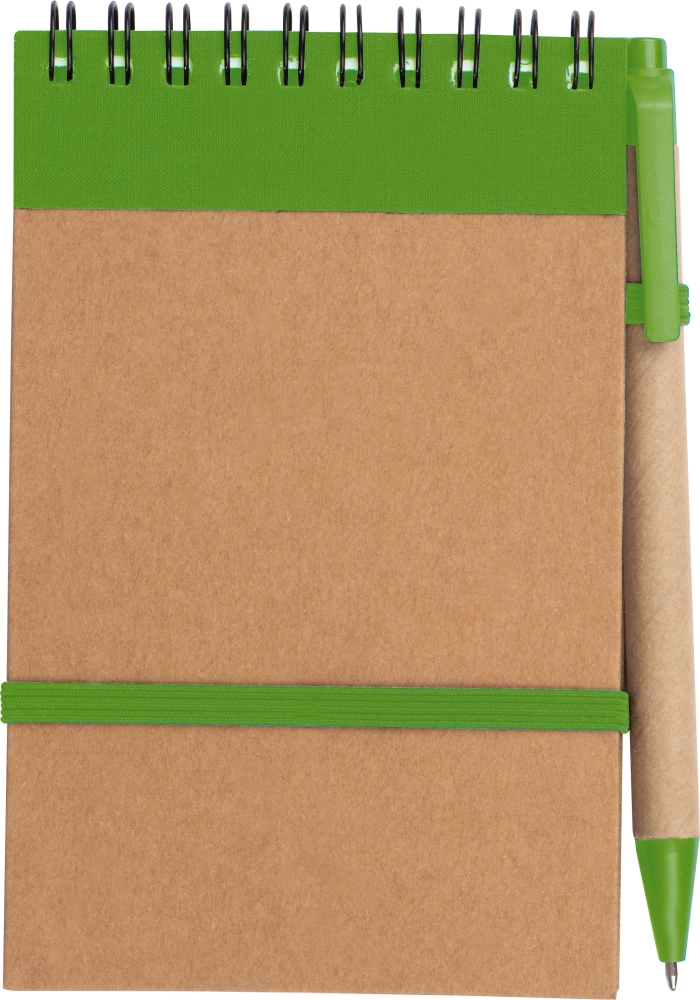 Zápisníček s kroužkovou vazbou, linkovanými listy a propiskou, zelená