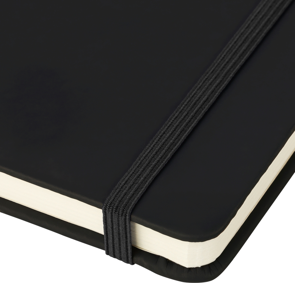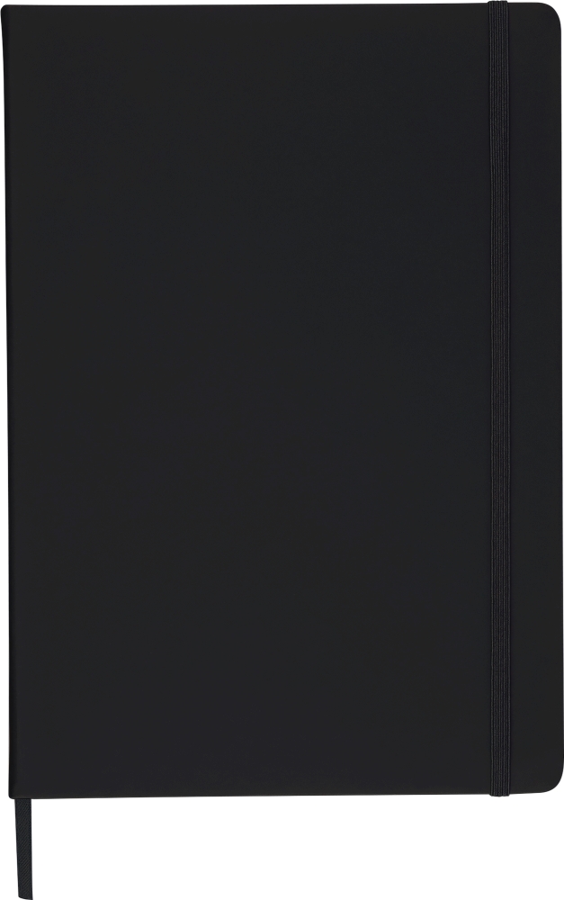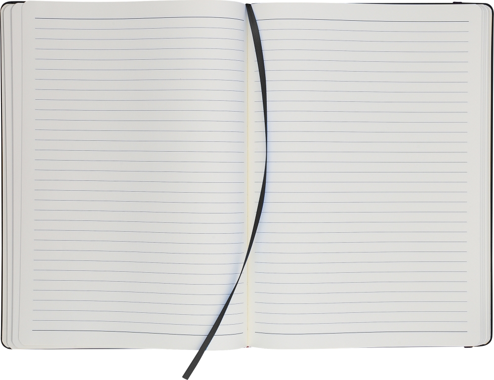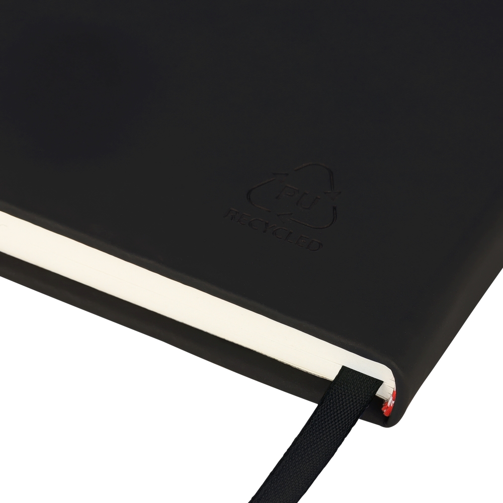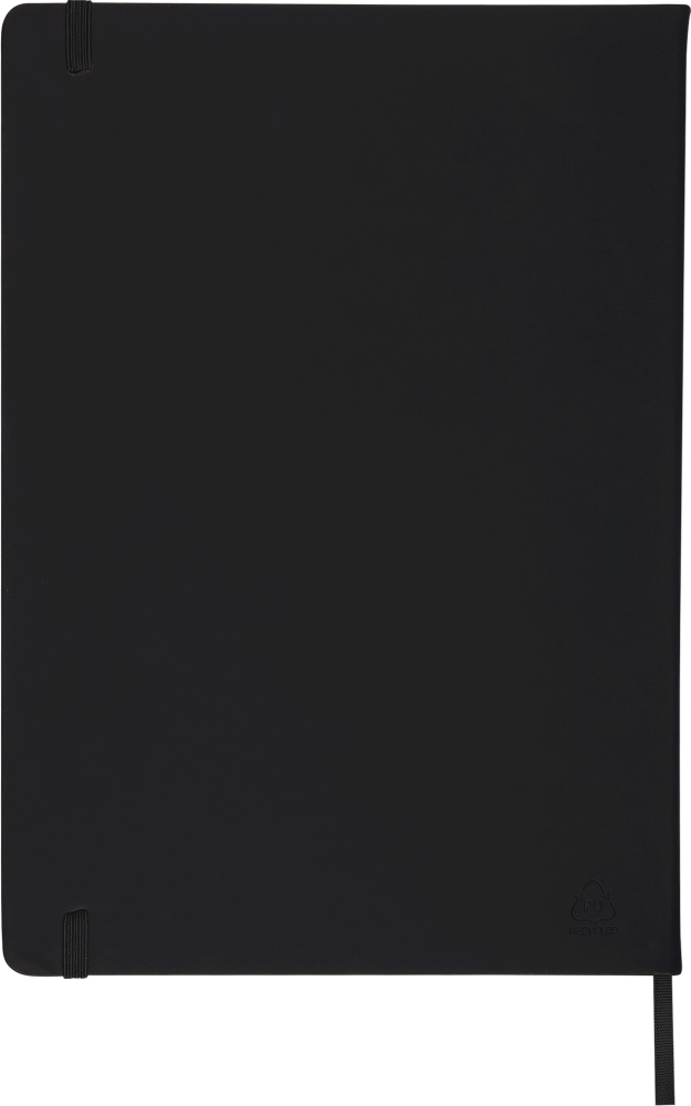 Poznámkový blok A4 s tvrdou vazbou vyrobenou z pestrobarevných recyklovaných materiálů (PU). Obsahuje 96 oboustranně linkovaných stránek (6 g/m2) s řádkováním 0,7 cm, začínajících a končících dvěma prázdnými stránkami. Papír v tomto sešitu má certifikaci FSC® Mix. Má zapínání s gumičkou shodné barvy, integrovaný popisovač a reliéfní logo z recyklovaného PU na zadní straně obálky. Rozměry: 1,7 x 29 cm