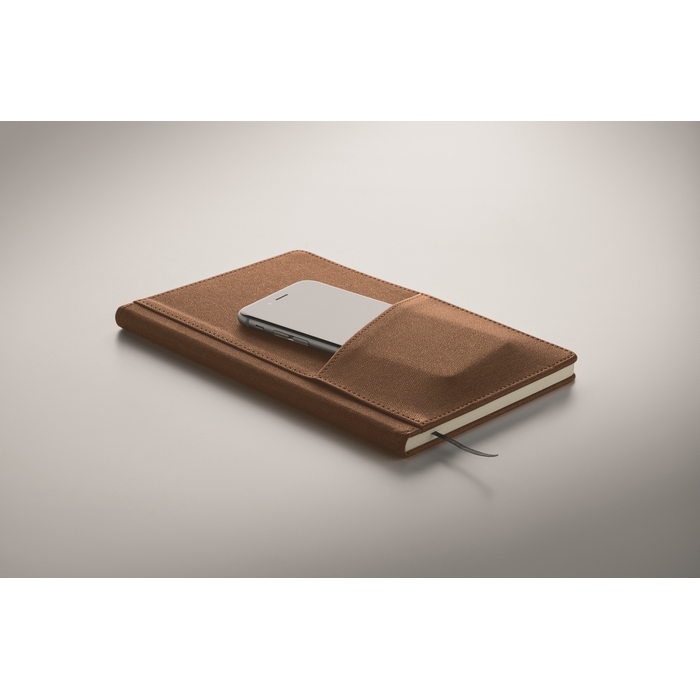 Zápisník A5 s tvrdými PU deskami, přední kapsou na telefon a poutkem na pero. 160 linkovaných stran z recyklovaného papíru (80 listů). Záložka v odpovídající barvě. FSC®-certified | FSC MIX CREDIT, P7.1, FSC-C213206 Rozměry: 21 x 14 x 1,2 cm