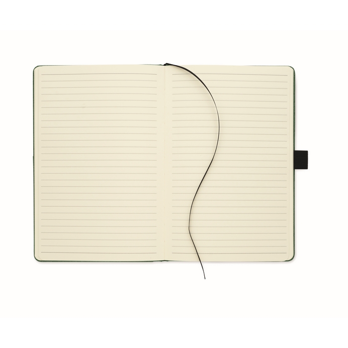 Zápisník A5 s tvrdými PU deskami, přední kapsou na telefon a poutkem na pero. 160 linkovaných stran z recyklovaného papíru (80 listů). Záložka v odpovídající barvě. FSC®-certified | FSC MIX CREDIT, P7.1, FSC-C213206 Rozměry: 21 x 14 x 1,2 cm