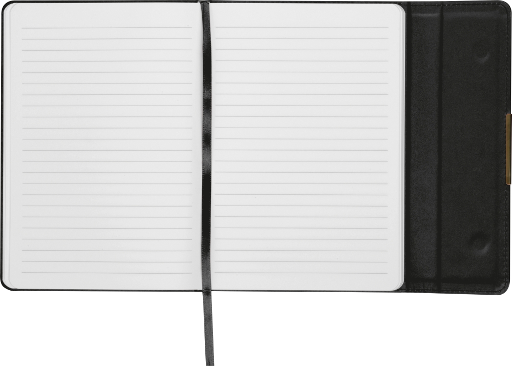 Zápisník A5 s magnetickým zavíráním, obal z recyklovaného PU, 192 linkovaných stran (96 listů, 80 g/m2). Rozměry: 15,2 x 2 x 21 cm