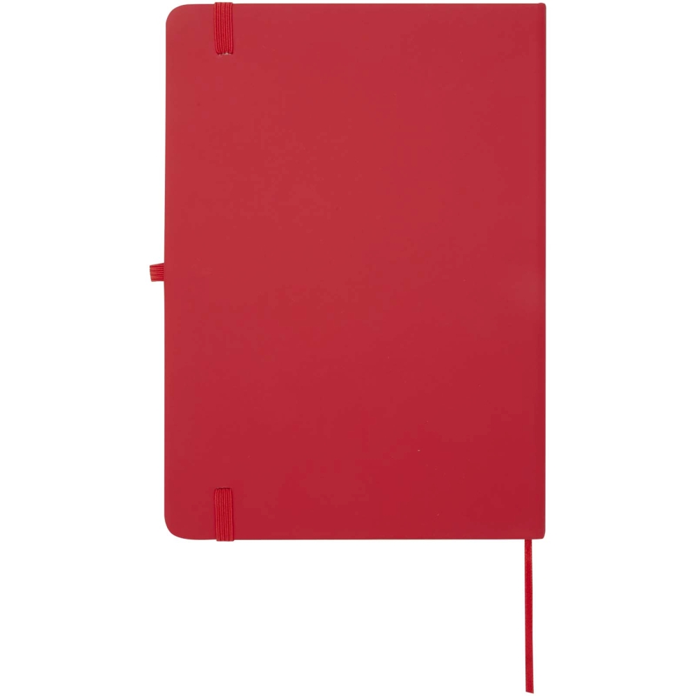 Zápisník A5 s pevnou obálkou a zaoblenými rohy je nejen skvělým pomocníkem v kanceláři, ale také ideální příležitostí k propagaci vaší značky. Lepenkový zápisník má na dotek měkkou obálku a 80 linkovaných listů v krémové barvě o gramáži 70 g/m2, což je ideální pro zapisování rychlých nápadů nebo podrobných poznámek. Zápisník má poutko na pero, elastický uzávěr, záložku a rozšiřitelnou kapsu. Rozměry: 21 x 14,5 cm