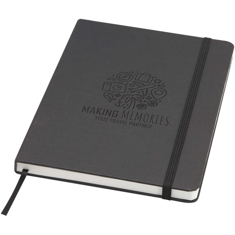 BASOR Zápisník A5 s barevnou gumičkou a barevným podkladem vhodným pro laser, černá