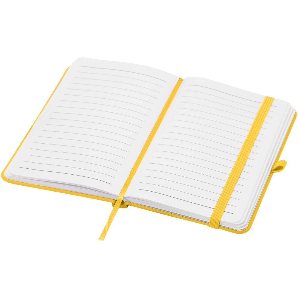 Zápisník A6 s pevnou obálkou a zaoblenými rohy je nejen skvělým pomocníkem v kanceláři, ale také ideální příležitostí k propagaci vaší značky. Lepenkový zápisník má na dotek měkkou obálku a 80 linkovaných listů v krémové barvě o gramáži 70 g/m2, což je ideální pro zapisování rychlých nápadů nebo podrobných poznámek. Zápisník má poutko na pero, elastický uzávěr, záložku a rozšiřitelnou kapsu. Rozměry: 14 x 8,9 cm