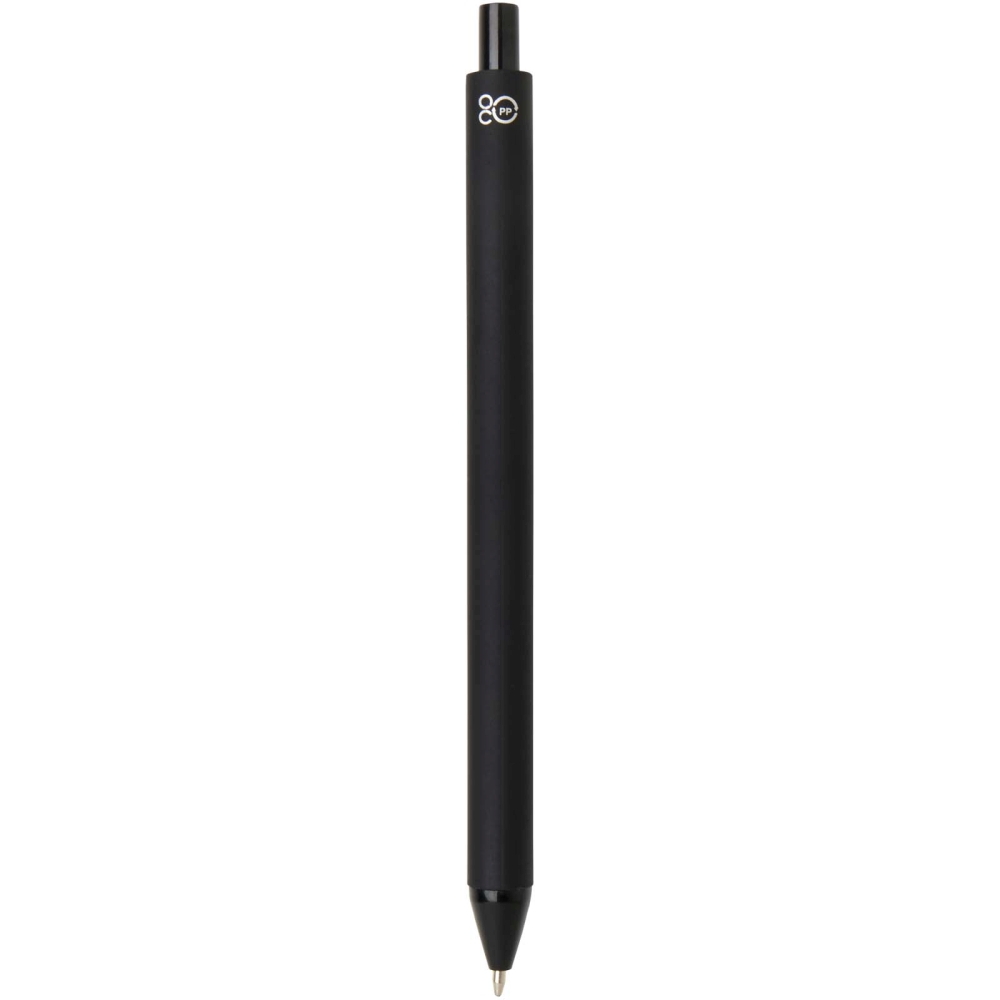 Zápisník s pevnou obálkou formátu A5 z plastu recyklovaného z oceánu s kuličkovým perem, černá