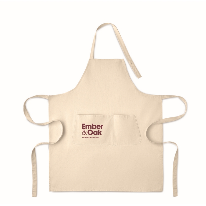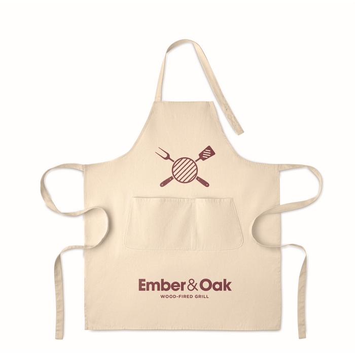 Nastavitelná zástěra s laclem a 1 velkou přední kapsou a 2 přihrádkami. Organická bavlna o gramáži 240 g/m2. S nastavitelným popruhem pomocí knoflíku. Tento výrobek má certifikát OEKO-TEX® STANDARD 100.Rozměry: 75 x 90cm