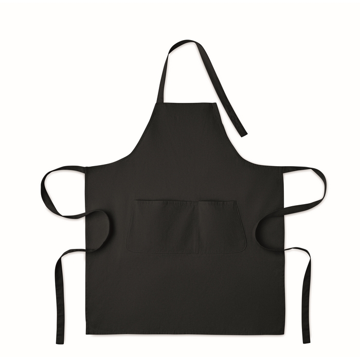 Nastavitelná zástěra s laclem a 1 velkou přední kapsou a 2 přihrádkami. Organická bavlna o gramáži 240 g/m2. S nastavitelným popruhem pomocí knoflíku. Tento výrobek má certifikát OEKO-TEX® STANDARD 100.Rozměry: 75 x 90cm